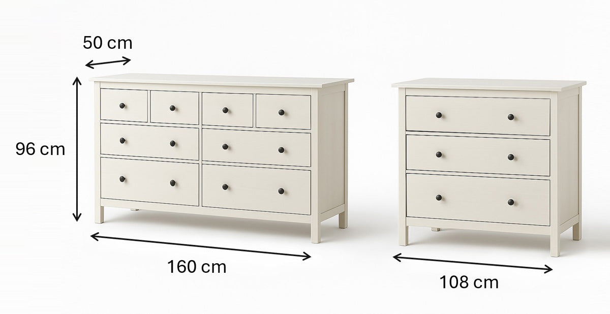 Wer die Wahl hat, hat die Qual. Um dir deine Kaufentscheidung zu erleichtern, haben wir dir hier alle Fakten zu der 108 cm und 160 cm breiten Hemnes Kommode zusammengestellt.