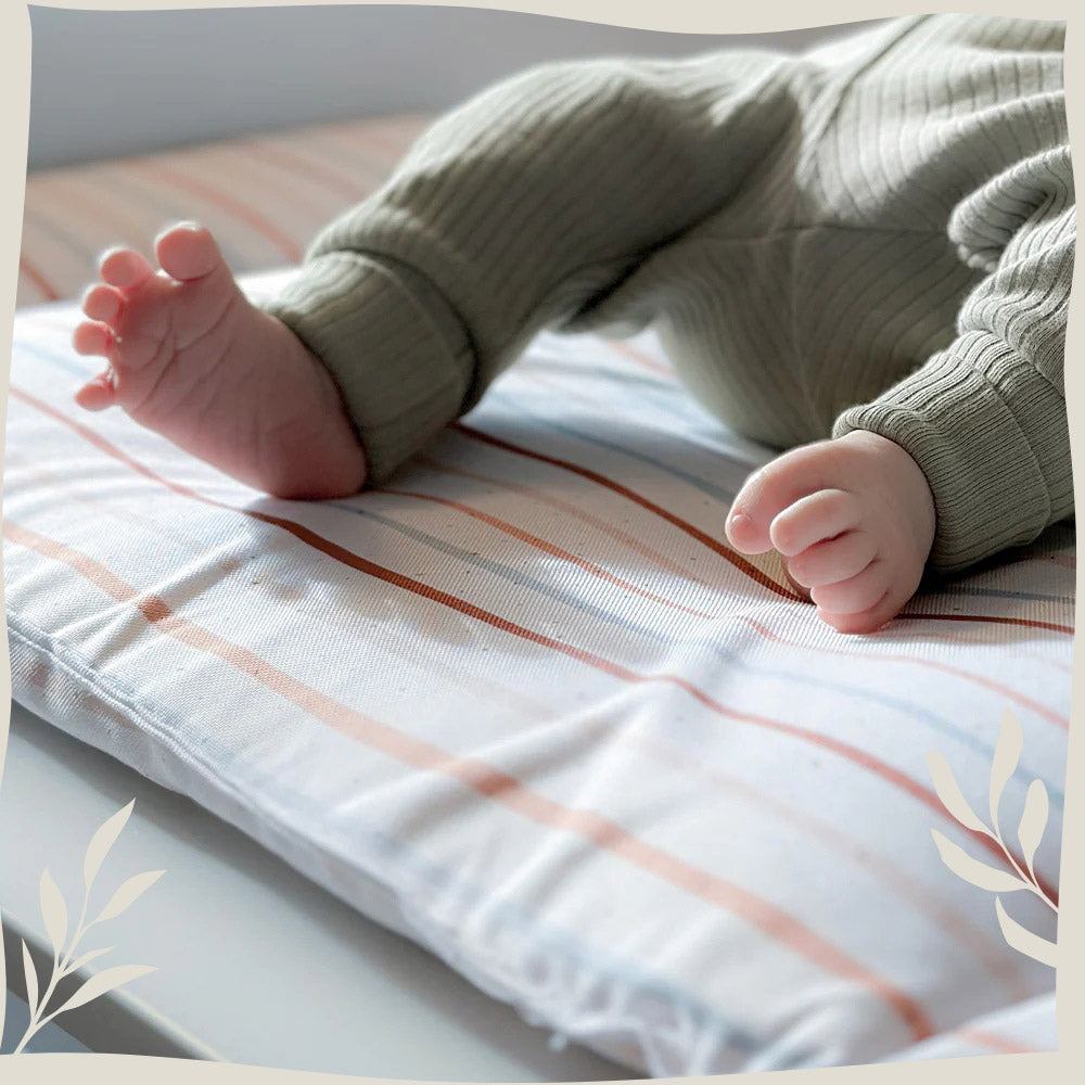 Unsere Wickelauflage überzeugt vor allem durch zwei Faktoren: Sie ist zum einen unglaublich einfach zu reinigen. Durch eine spezielle Oberflächenstruktur kannst du leichte Verschmutzungen ratzfatz mit einem feuchten Tuch abwischen. Bei gröberen Verschmutzungen steckst du die Wickelunterlage im Schonwaschgang in die Waschmaschine.